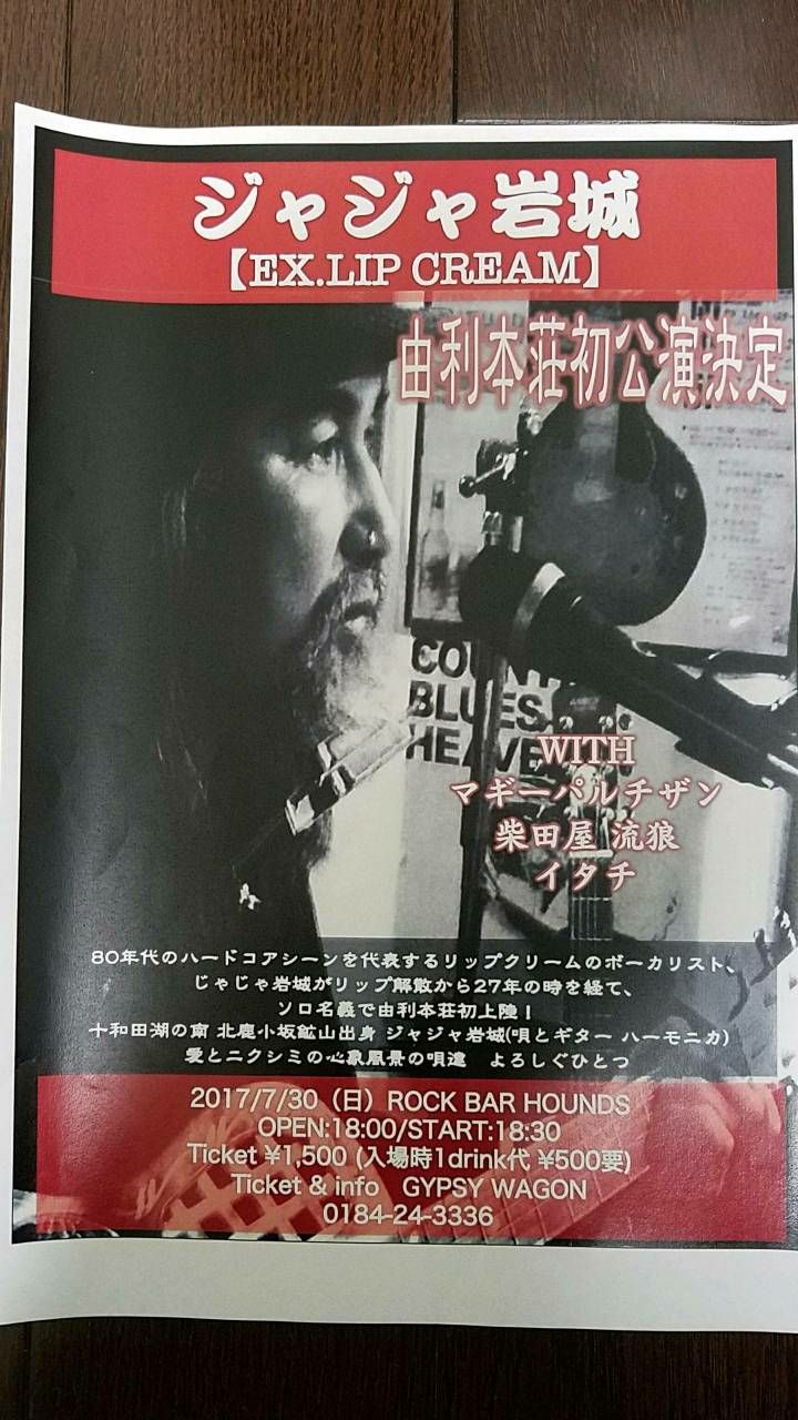 7/30(日)、元リップクリームのvo.ジャジャ岩城さんがやってきます。